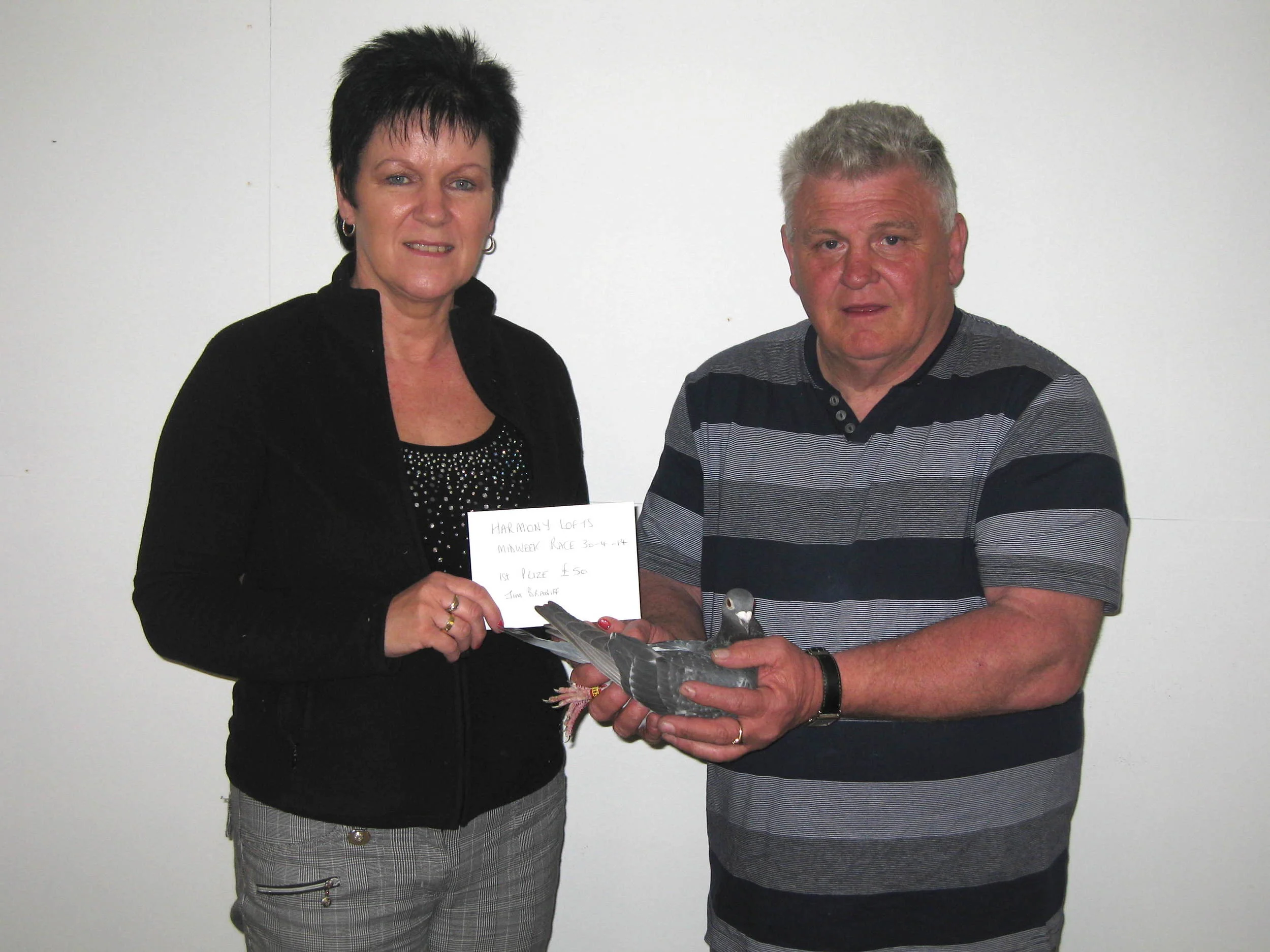 A very happy Arter O'Hanlon also of the Fortfield Club winning 3rd Spot and collecting £20. This is a very good pigeon having previously won 11th Open Talbenny Derby. Today Arter had a very good race also taking 5th and 6th positions.